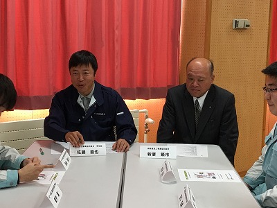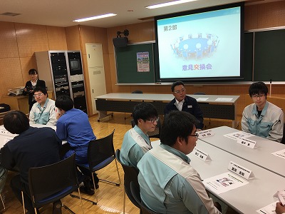 意見交換会では、回を重ねてきたから分かることですが、就職を前に不安なことを尋ねると、技術的に会社についていけるのだろうか、職場の人とうまく付き合っていくことができるだろうかという不安が多いと感じました。一方で就職先の企業に求めるこはと尋ねると、新人教育や技量にあった仕事をさせてほしい。また、コミュニケーションを会社の人からとって欲しいというものが多くありました。