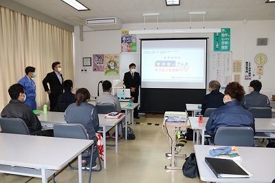 本年も釧路ポリテクセンター様より、業界説明会の依頼を頂き、業界のPRをさせて頂きました。今回の入校生は10名と前回お伺いした時より生徒数が減り、さみしい人数ではありましたが、一人でも多くの方が電気業界に進まれる事を期待しながら、電気業界のPRを精一杯させて頂きました。内容については、前回同様、電気業界の社会的地位や魅力、やりがいや必要性、又、電気工事の種類や職種、電気工事士を目指す上で必要な資格等についてお話させて頂きました。さらに今回は会社(企業)が求めている能力と生徒(求職者)が就職する際、必要と感じている能力に大きな違いがある事や高いスキルや知識より社会人として基本的な能力(社会人基礎力)を身につけている人の方が会社(企業)にとって大事な人材になりうる事等、業界PR以外の部分についてもお話させて頂きました。
