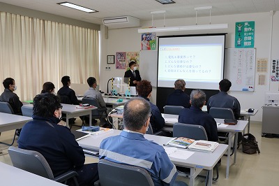 入校間もない皆さんに、30分という短い時間でのお話でしたが、参加して頂いた皆さんにとっては、大変新鮮な情報だったと思います。卒業したあと何処かの電気工事店に就職され、近い将来我々と共に電気業界を担う一員として活躍される日が来るのではないかと期待させれる事業となりました。